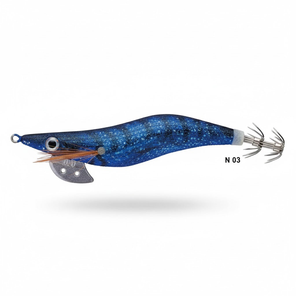Os EURIALE da SUGOI são toneiras afundantes para pesca ao choco em eging, com chumbo calibrado que garante um trabalho estável na água. O corpo é revestido com tecido resistente e texturizado, apresentando um padrão que imita as escamas de um pequeno peixe, muito eficaz na atração dos chocos.