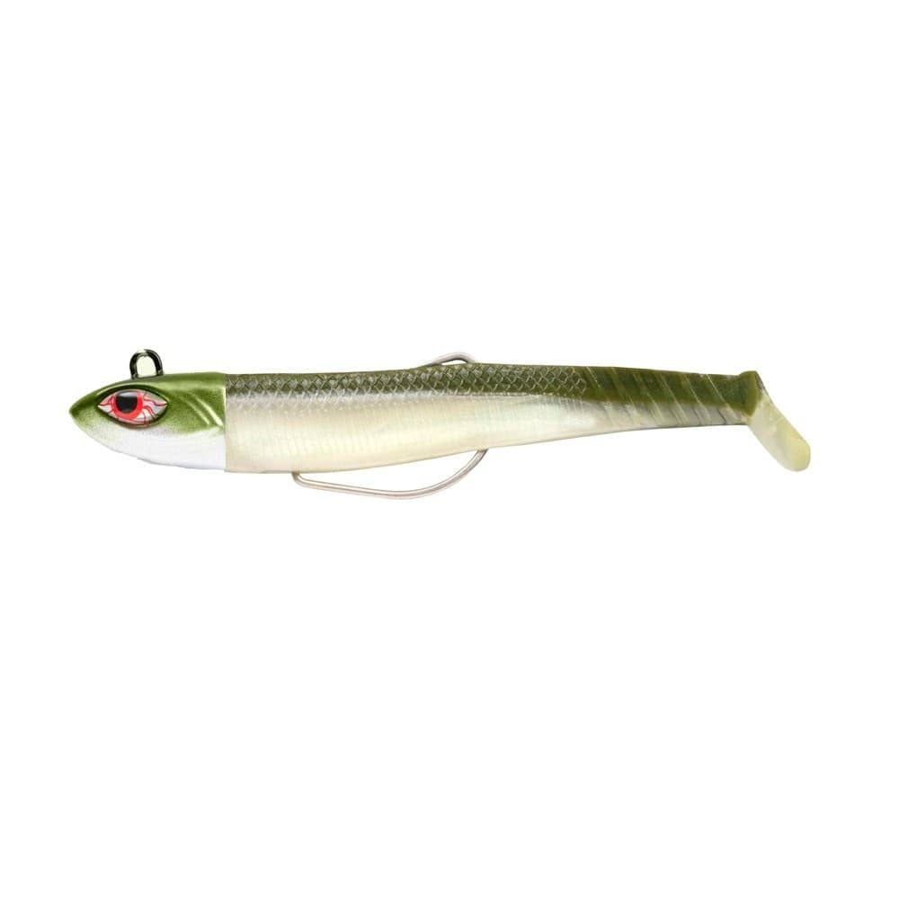 O corpo macio vibra facilmente com movimentos mínimos, o que aumenta a eficácia junto de predadores cautelosos. Com 120 mm de comprimento e cerca de 36 g de peso, é ideal para pesca de espécies predadoras em água doce ou salgada. Vem pronta a usar, combinando vinil+cabeça+anzol, e proporciona uma apresentação realista mesmo com recuperação lenta ou perto do fundo.