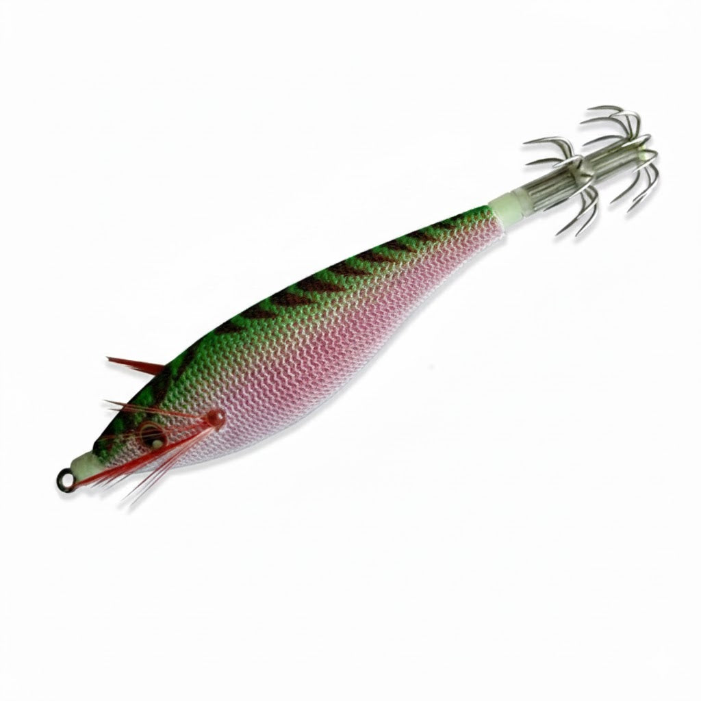 A Akami Zettai S é uma toneira compacta e bem equilibrada, desenvolvida para a pesca de lulas e outros cefalópodes com a técnica de eging. O seu corpo é vistoso e resistente, desenhado para imitar presas naturais na água. Este modelo apresenta um afundamento lento, o que permite manter a amostra na zona de ataque por mais tempo, ideal para águas pouco profundas ou quando os cefalópodes estão mais cautelosos. A distribuição de peso garante uma descida estável e controlada, simulando de forma realista o movimento de presas durante recolhimentos com pequenos movimentos e pausas. A toneira inclui dupla coroa de anzóis, assegurando uma boa taxa de fisgada.